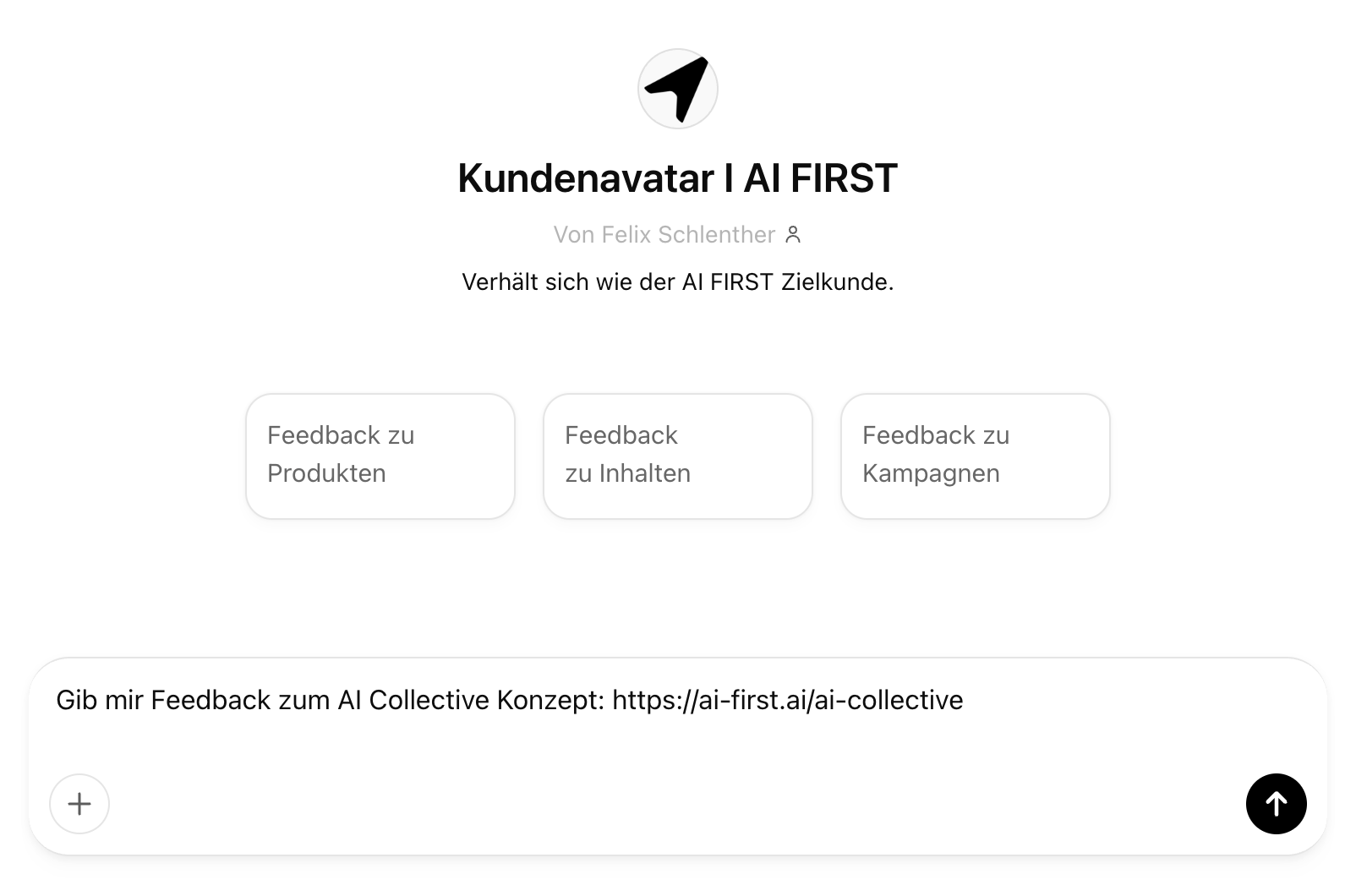 - Erstelle einen Assistenten/CustomGPT für deinen Zielkunden und lass dir regelmäßig Feedback geben. Anleitung hier.