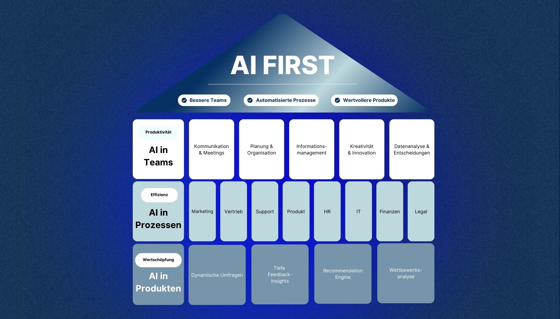 Mit dem AI-First Ansatz haben wir jeden Prozess und jede Aufgabe aus AI-Perspektive hinterfragt und geprüft, was wirklich noch von einem Menschen getan werden muss und was die Maschine übernehmen kann.