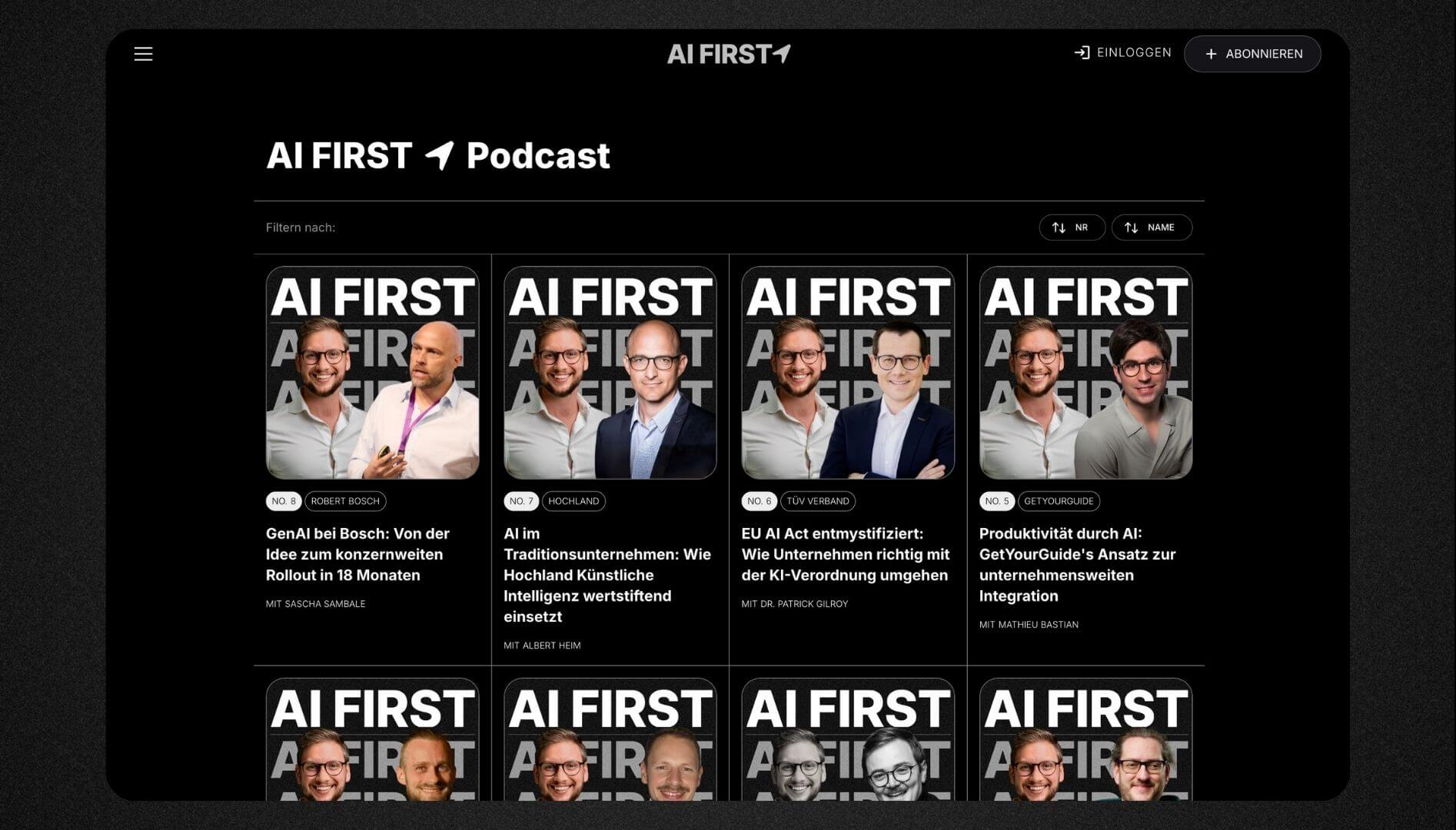 Aus dem Newsletter entstand der AI FIRST Podcast, in dem KI-Verantwortlichen aus Unternehmen über die Herausforderungen und Lösungsansätze der KI-Transformation sprechen.