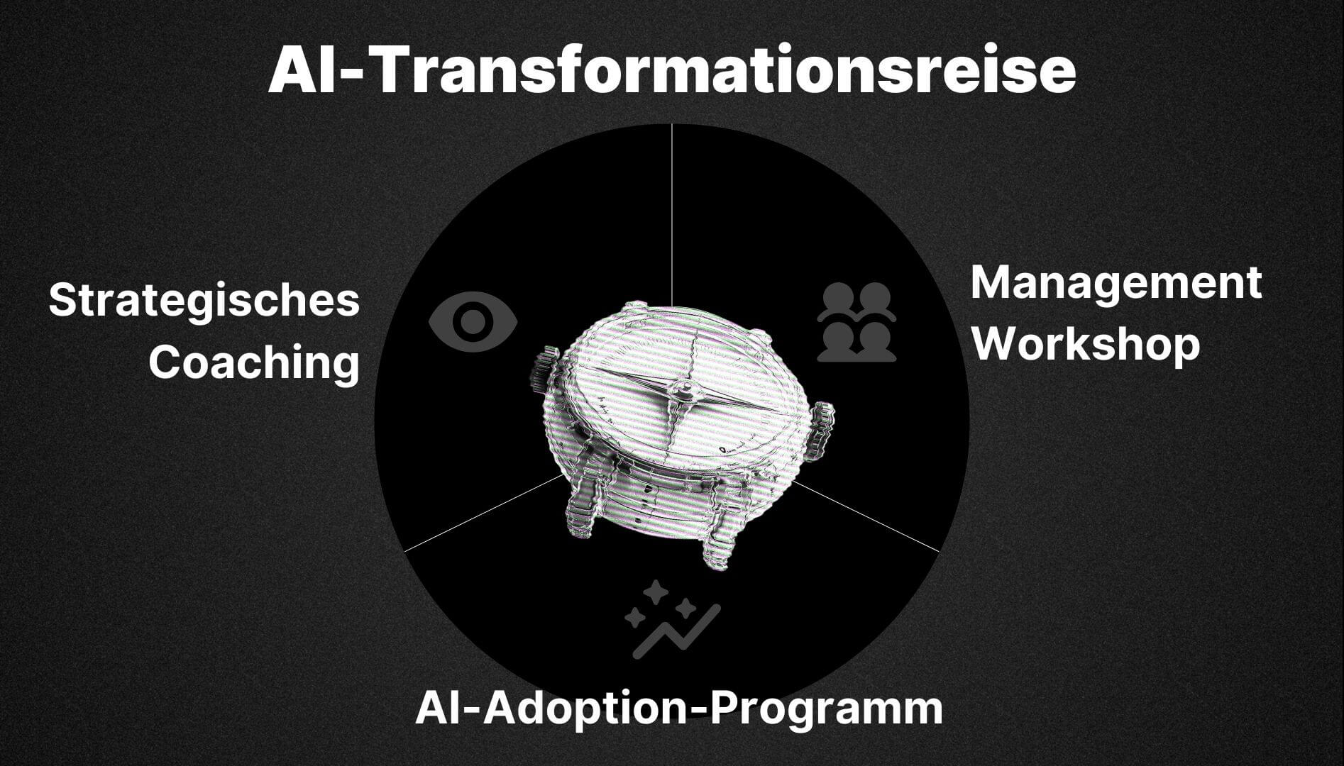 Wir haben drei aufeinander aufbauende Angebote entwickelt, die Dein Unternehmen zum Vorreiter in der AI-Ära positionieren.
