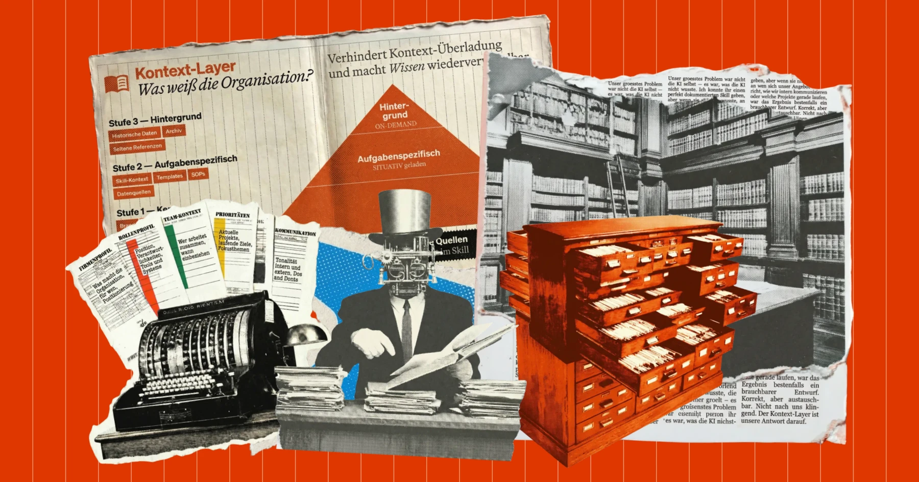 Der Kontext-Layer ist unsere Antwort darauf. Er ist die strukturierte Sammlung von allem, was die KI über uns und unsere Organisation wissen muss. Dabei war uns früh klar, dass „alle Dokumente in ein KI-Tool kippen" nicht die Lösung ist. Wir haben das am Anfang selbst versucht – und gemerkt, dass zu viel unstrukturierter Kontext die Ergebnisse nicht verbessert, sondern verschlechtert. Die KI ertrinkt im Rauschen.